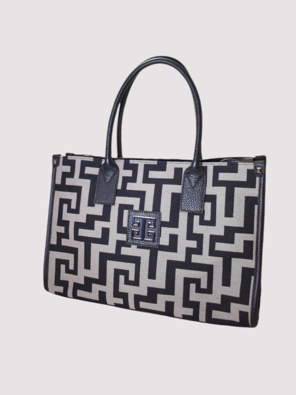 AKTI – CLASSIC Pattern – Ecru Diagonal/Black – EL Strap – Tote Bag