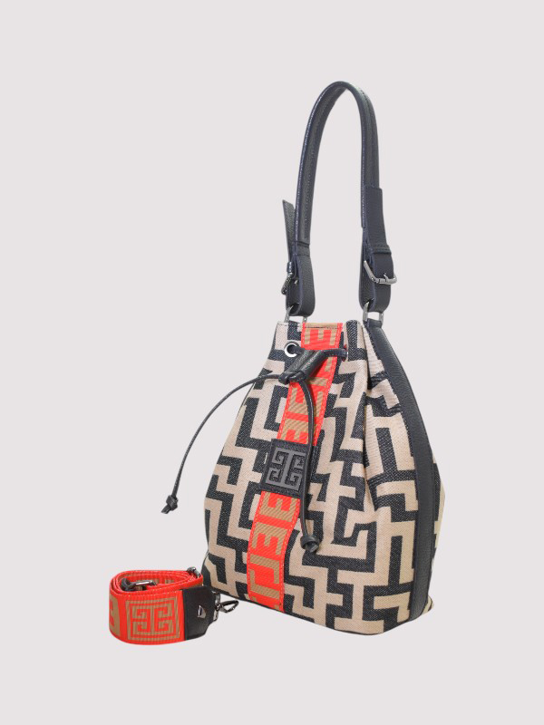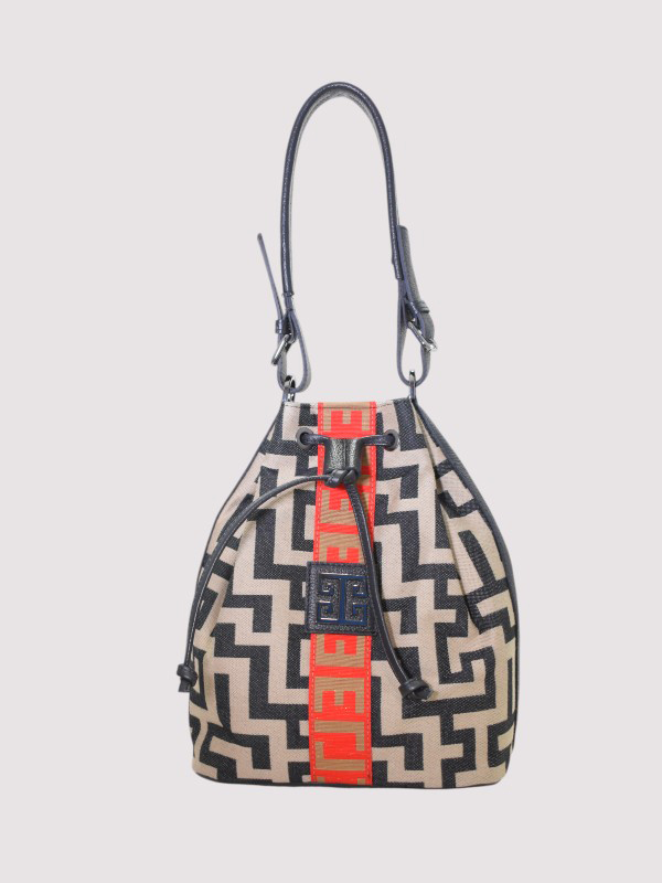 ARTEMIS – CLASSIC Pattern – Beige/Black – EL Apple/Peanut Strap – Bucket Bag