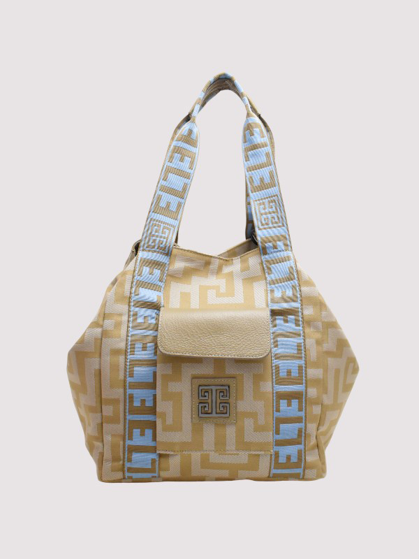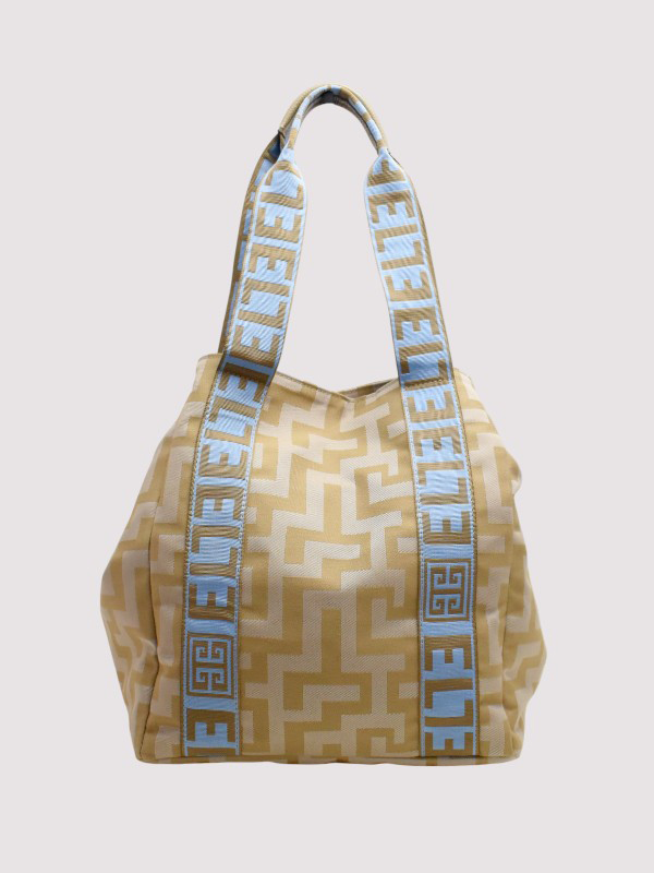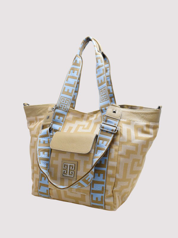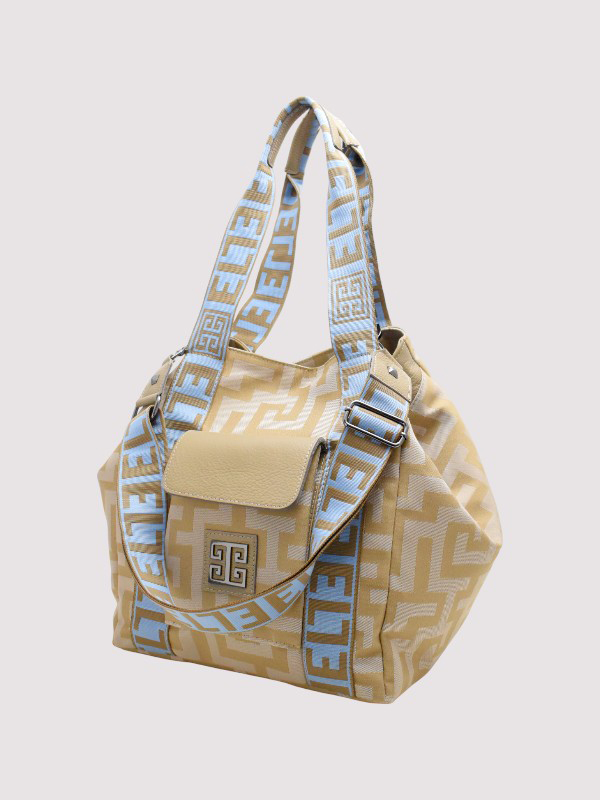 AVRA – CLASSIC Pattern – Beige – EL Baby Blue/Tan Strap – Shoulder Bag