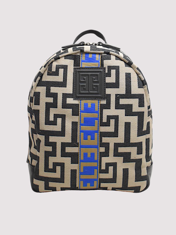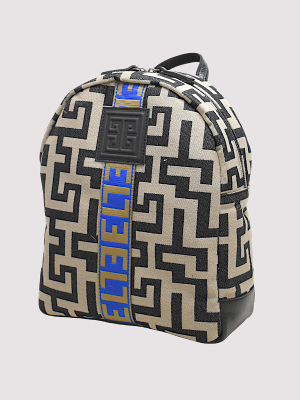 CLEO – CLASSIC Pattern – Beige/Black – EL Green/Red/Black Strap – Backpack