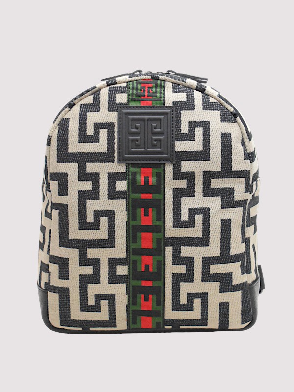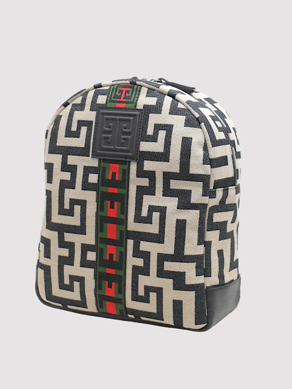CLEO – CLASSIC Pattern – Beige/Black – EL Green/Red/Black Strap – Backpack