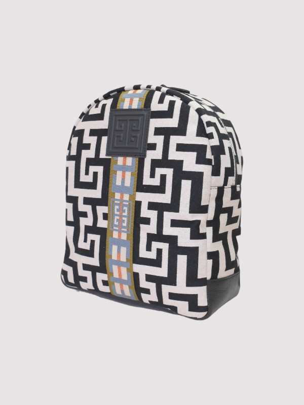 CLEO – CLASSIC Pattern – Ecru/Black – EL Jean/Khaki/Bronze Strap – Backpack