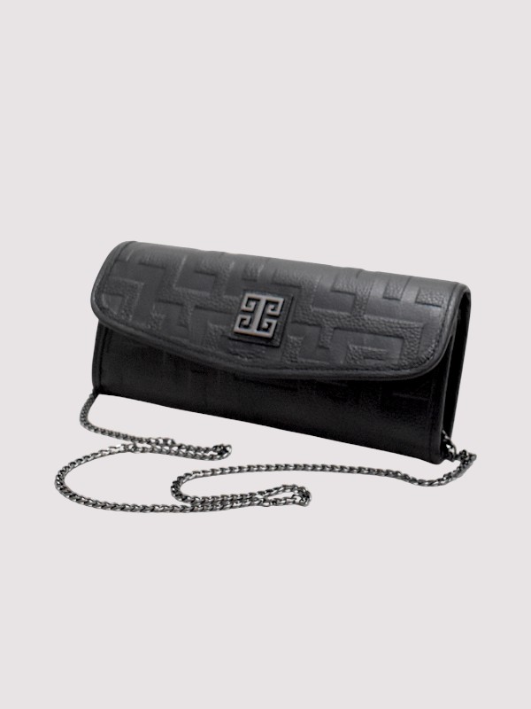 ELIA – LEATHER – Embossed CLASSIC Pattern – Black – Clutch