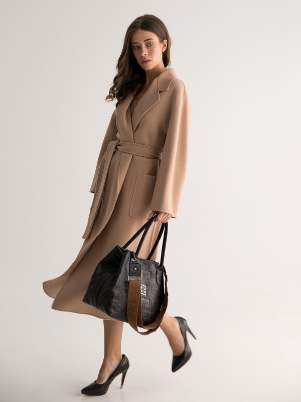 EMMELIA – Embossed LEATHER – CLASSIC Pattern – Black – EL Strap – Tote Bag