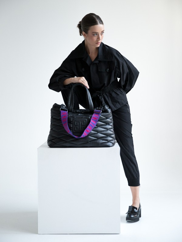 GALINI – CAPITONE Wide Rhombus – Black – EL Strap – Shoulder Bag