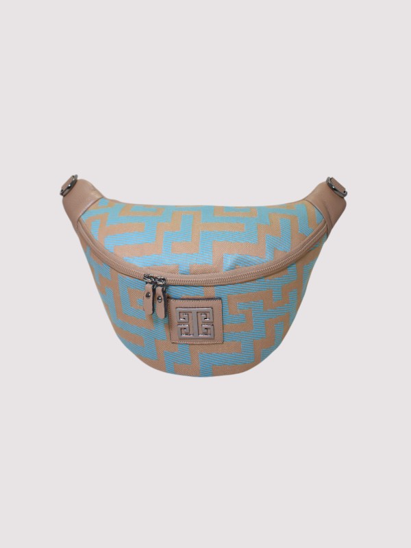 KRONOS Small – CLASSIC Pattern – BOLD DIAGONAL – Turquoise/Beige – EL Strap – Crossbody Bag