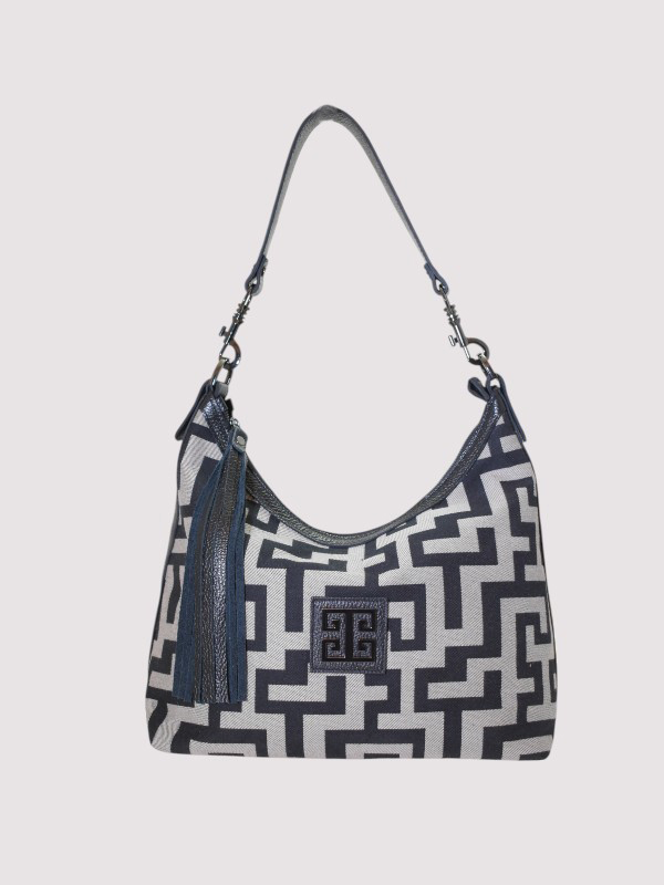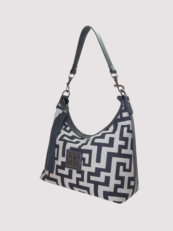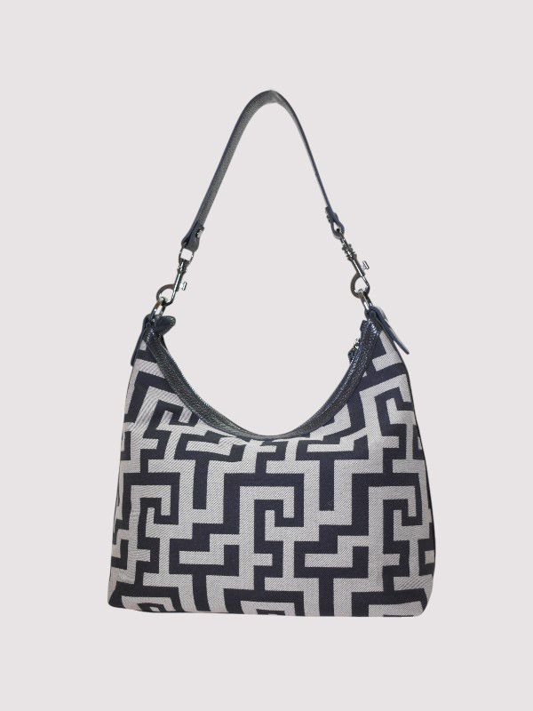 MIRA – CLASSIC Pattern – Ecru Diagonal/Black- Hobo Bag