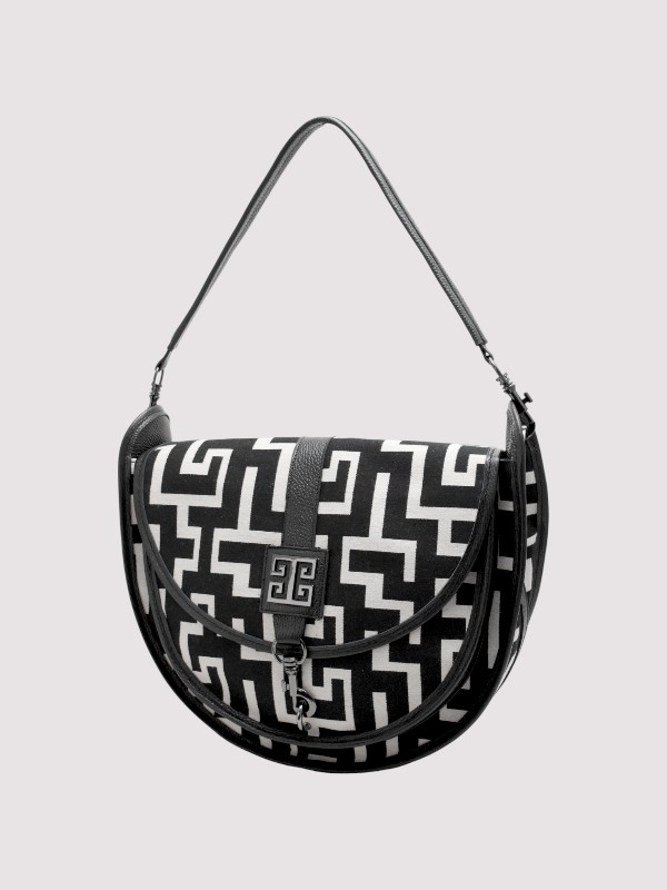 MOUSA – CLASSIC Pattern – Ecru/Black – Large Logo – Hobo Bag