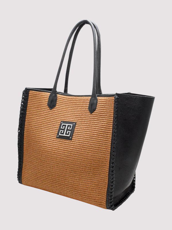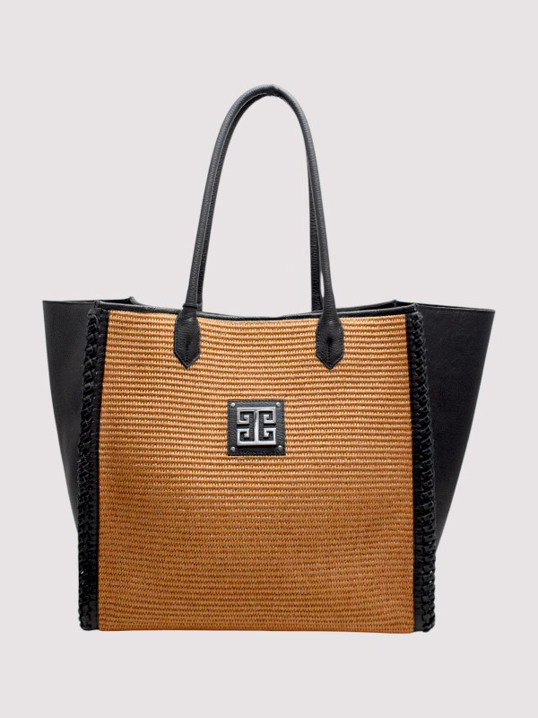 PLEXIS Large – RAFFIA – Tobacco – EL Strap – Shoulder Bag