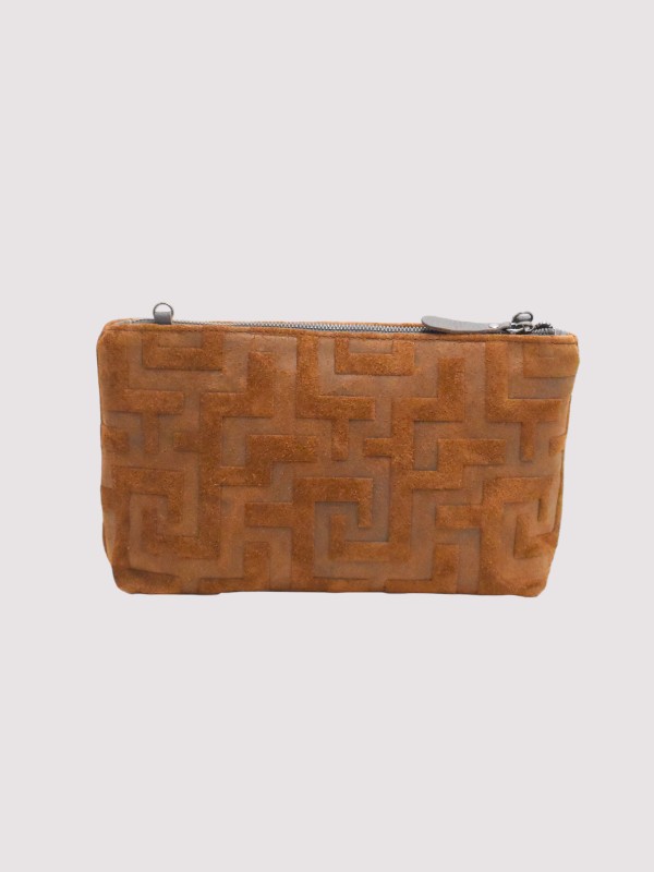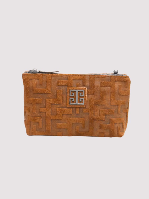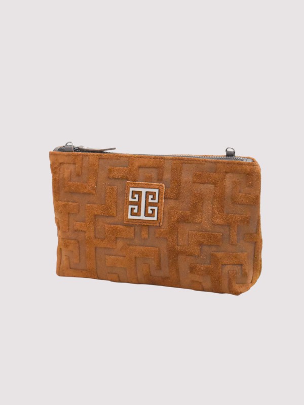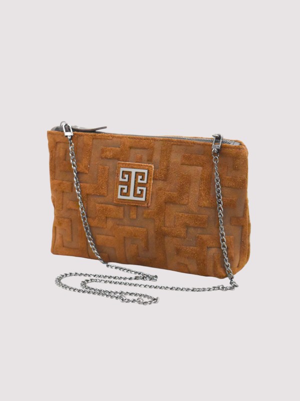 REA – Suede LEATHER Embossed – Cognac – Shoulder Clutch
