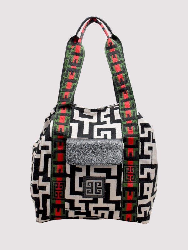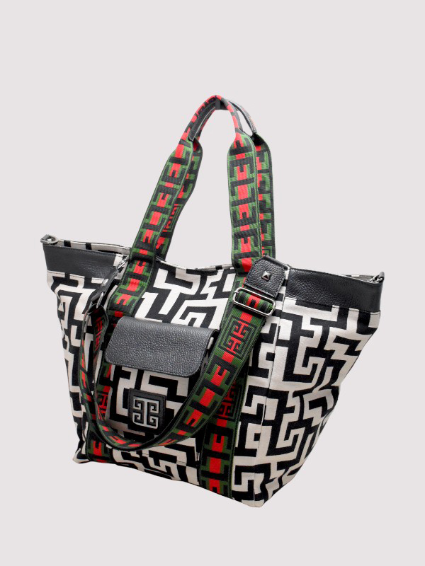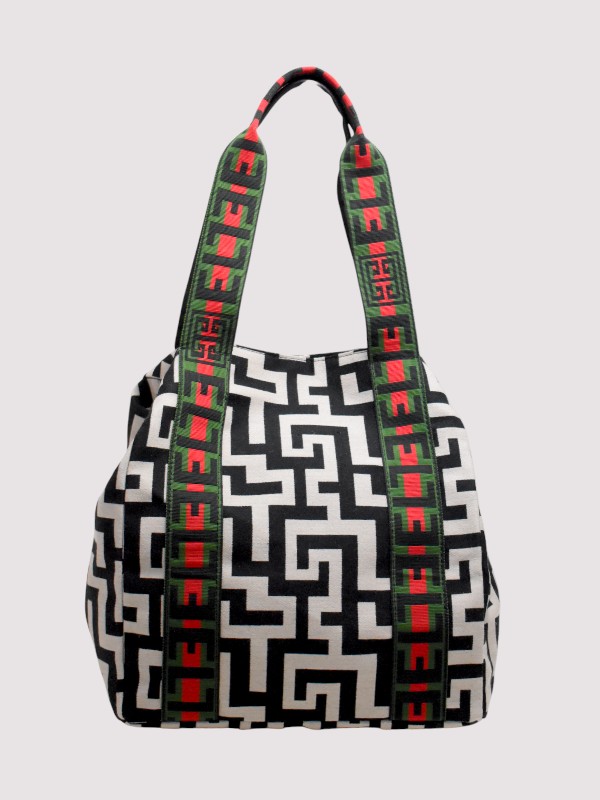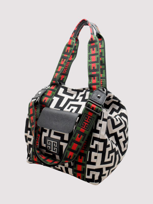 AVRA – CLASSIC Pattern – Εκρού Μαύρο – EL Ιμάντας Green/Black/Red – Τσάντα Ώμου