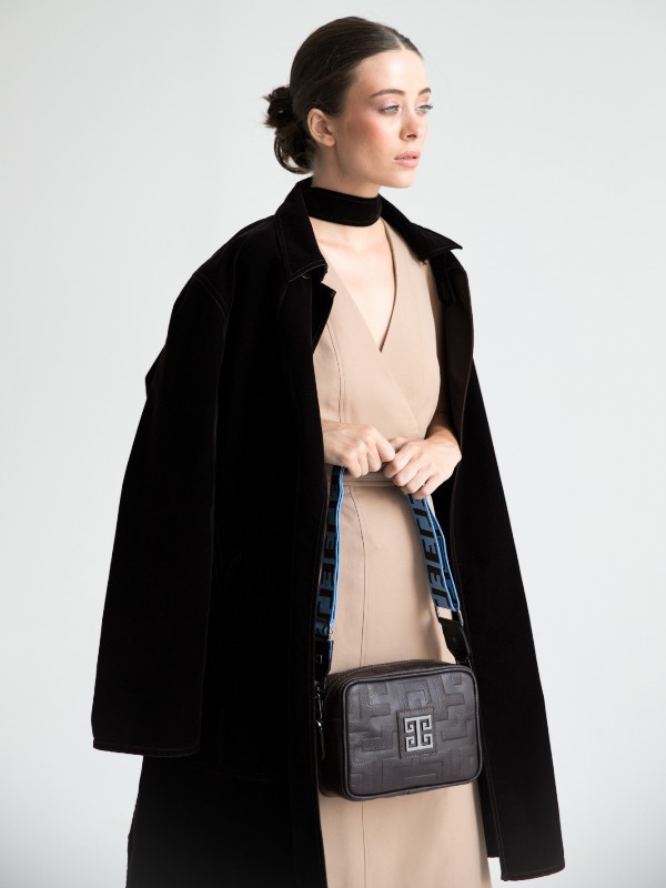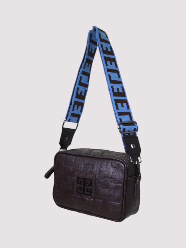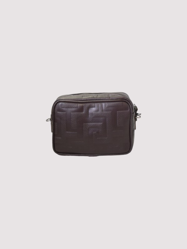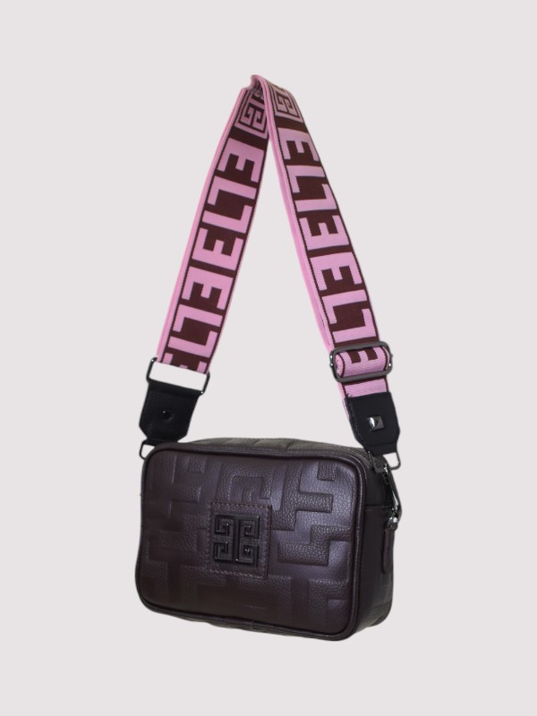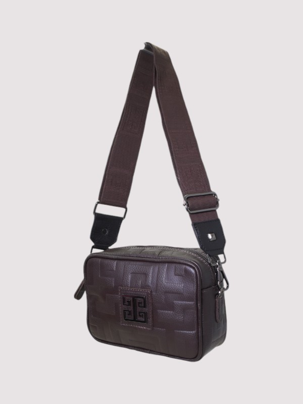 CHRONOS – Ανάγλυφο ΔΕΡΜΑ – CLASSIC Pattern – Καφέ Σοκολά – EL Ιμάντας – Τσάντα Χιαστί