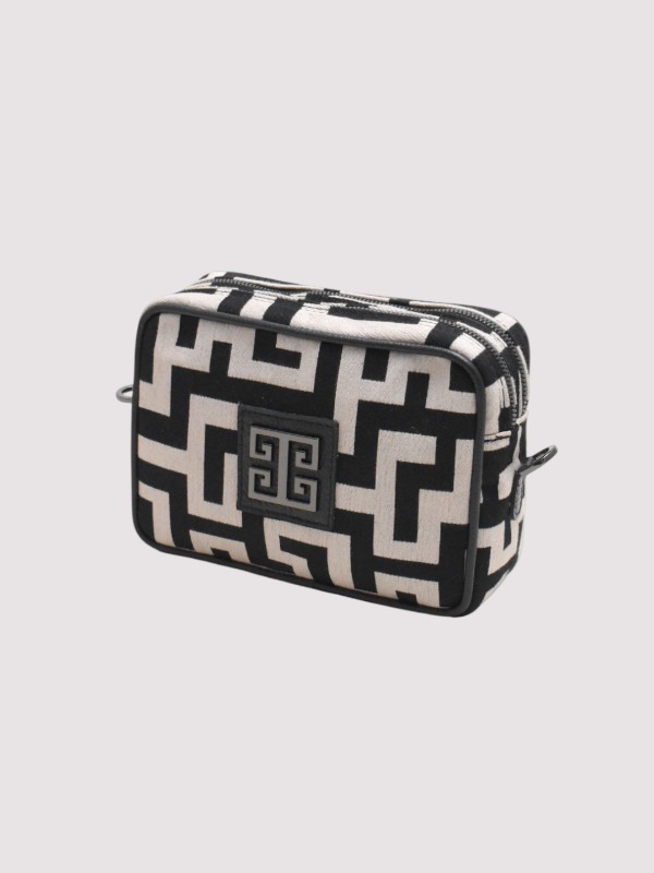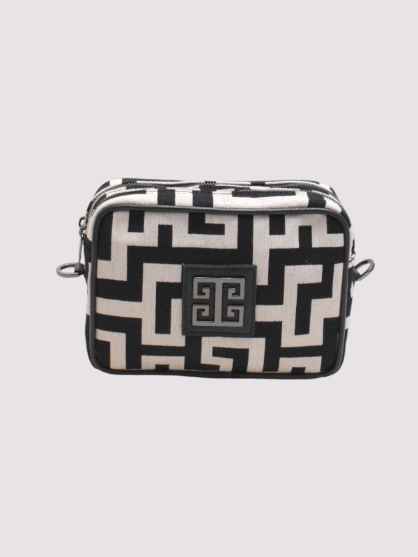 CHRONOS – CLASSIC Pattern – Εκρού/Μαύρο – EL Ιμάντας – Τσάντα Χιαστί