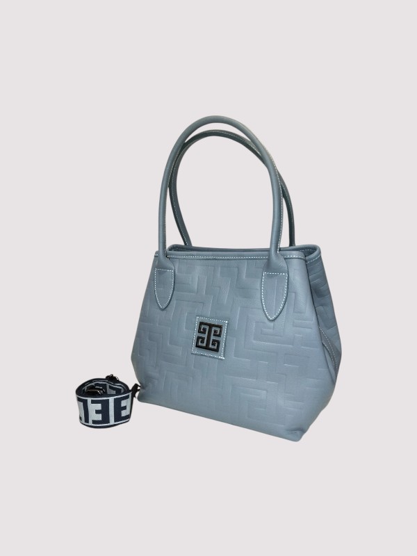 EMMELIA – Ανάγλυφο ΔΕΡΜΑ – CLASSIC Pattern – Σιέλ – EL Ιμάντας – Τσάντα Tote
