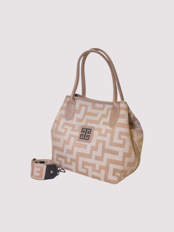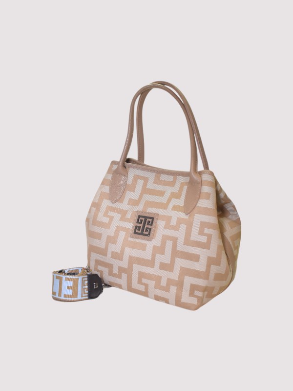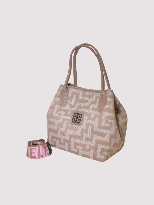 EMMELIA – CLASSIC Pattern – Μπεζ – EL Ιμάντας – Τσάντα Ώμου