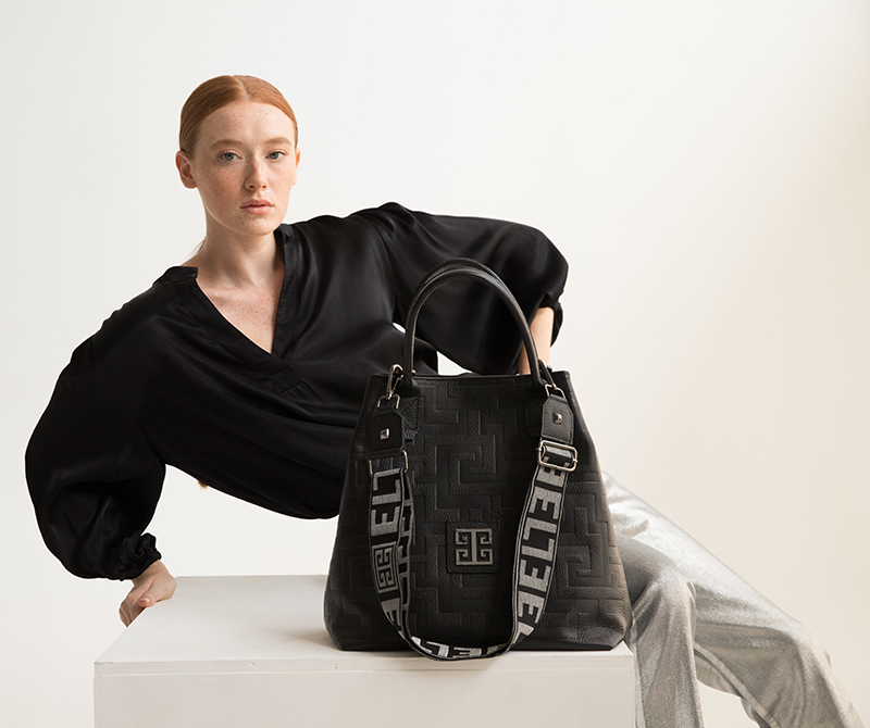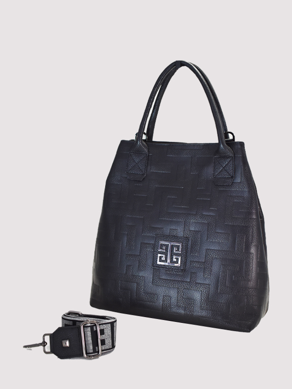 KARPO – Ανάγλυφο ΔΕΡΜΑ – CLASSIC Pattern – Mαύρο – EL Ιμάντας – Τσάντα Χειρός