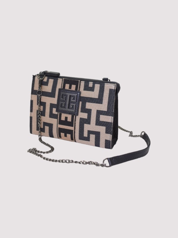 KRIOS CHAIN – CLASSIC Pattern – Μπεζ/Μαύρο – EL Φουντούκι/Μαύρο Ιμάντας – Τσάντα Χιαστί