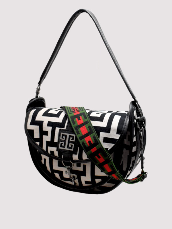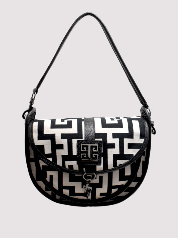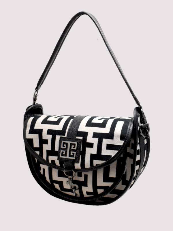 MOUSA SMALL – CLASSIC Pattern – Εκρού/Μαύρο – Hobo Τσάντα