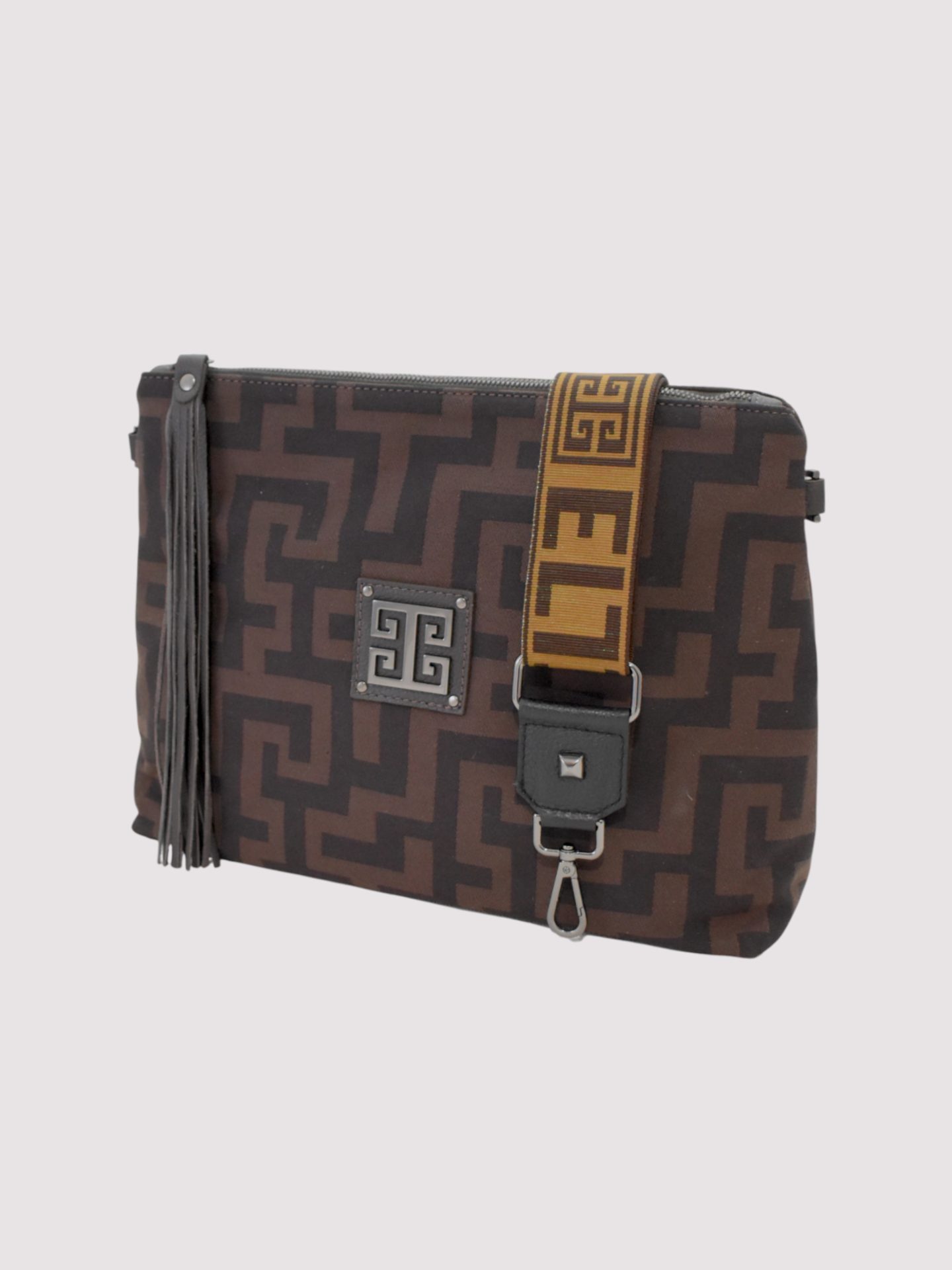 NEFELI Small – CLASSIC Pattern – Καφέ – EL Ιμάντας – Τσάντα Χιαστί