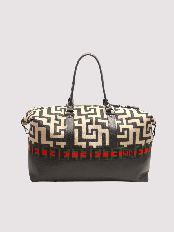 ODYSSEAS – CLASSIC Pattern – Μπέζ Μαύρο – EL Ιμάντας Λαδί/Μαύρο/Κόκκινο – Τσάντα Ταξιδίου