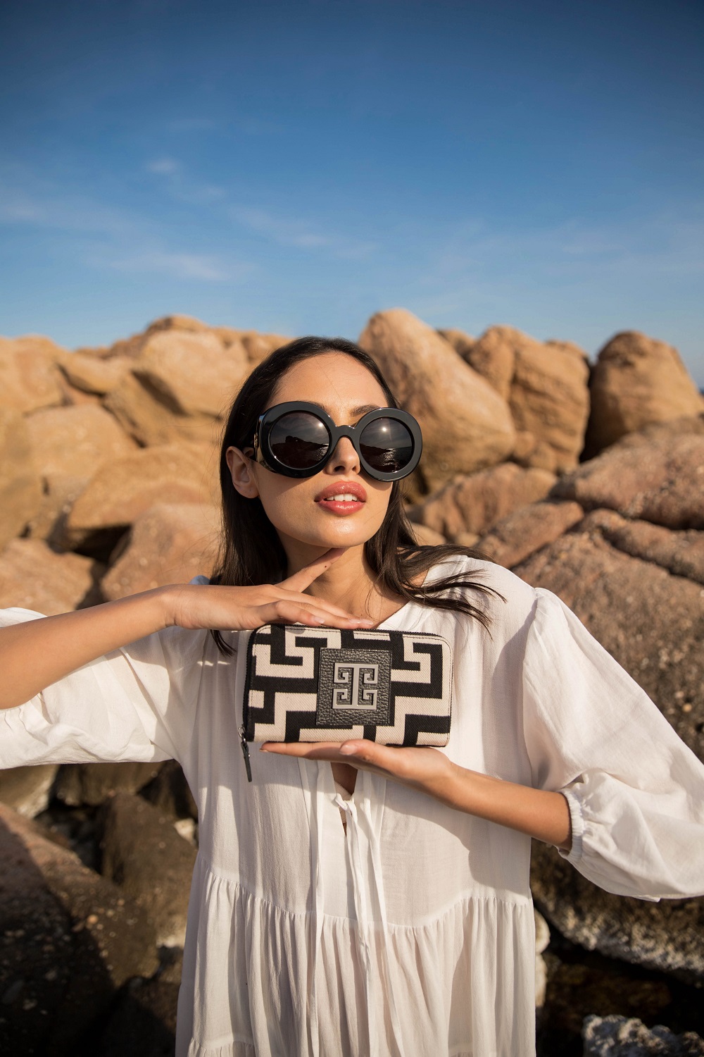 PLUTOS 1 – CLASSIC Pattern – Εκρού/Μαύρο – Πορτοφόλι
