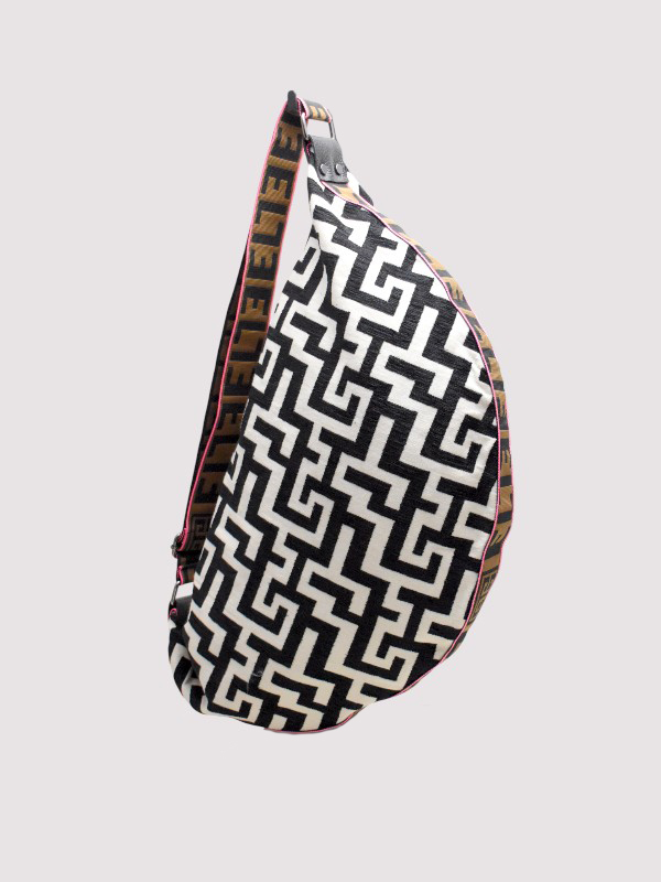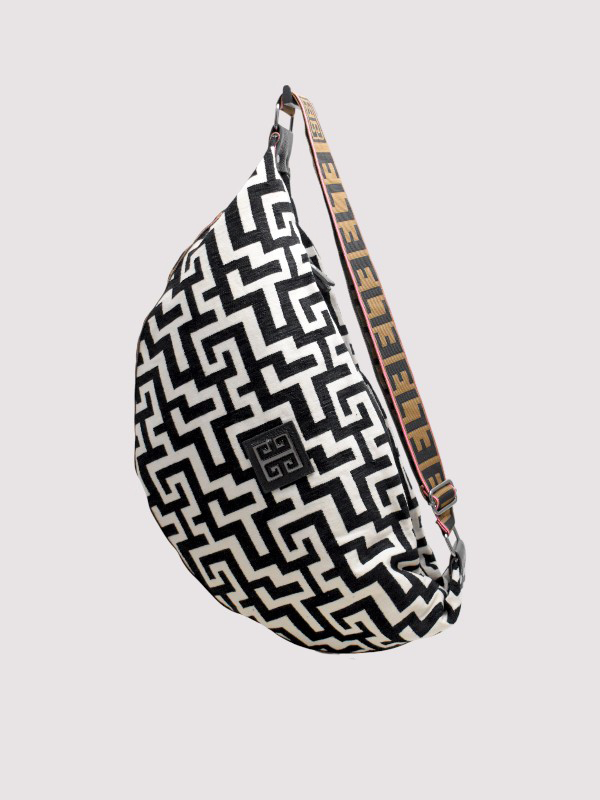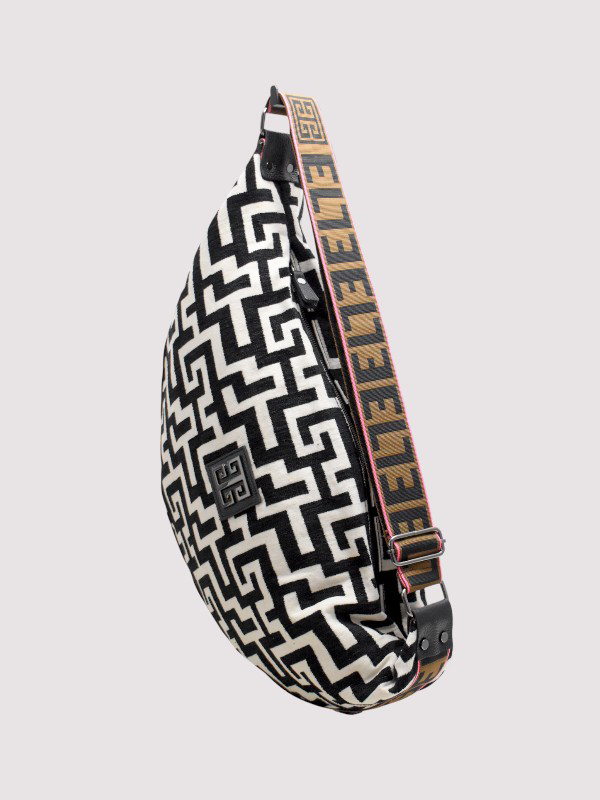 SANTORINI – CLASSIC Pattern – Εκρού/Μαύρο – EL Καφέ/Μαύρο/Ροζ Ιμάντας – Hobo Τσάντα